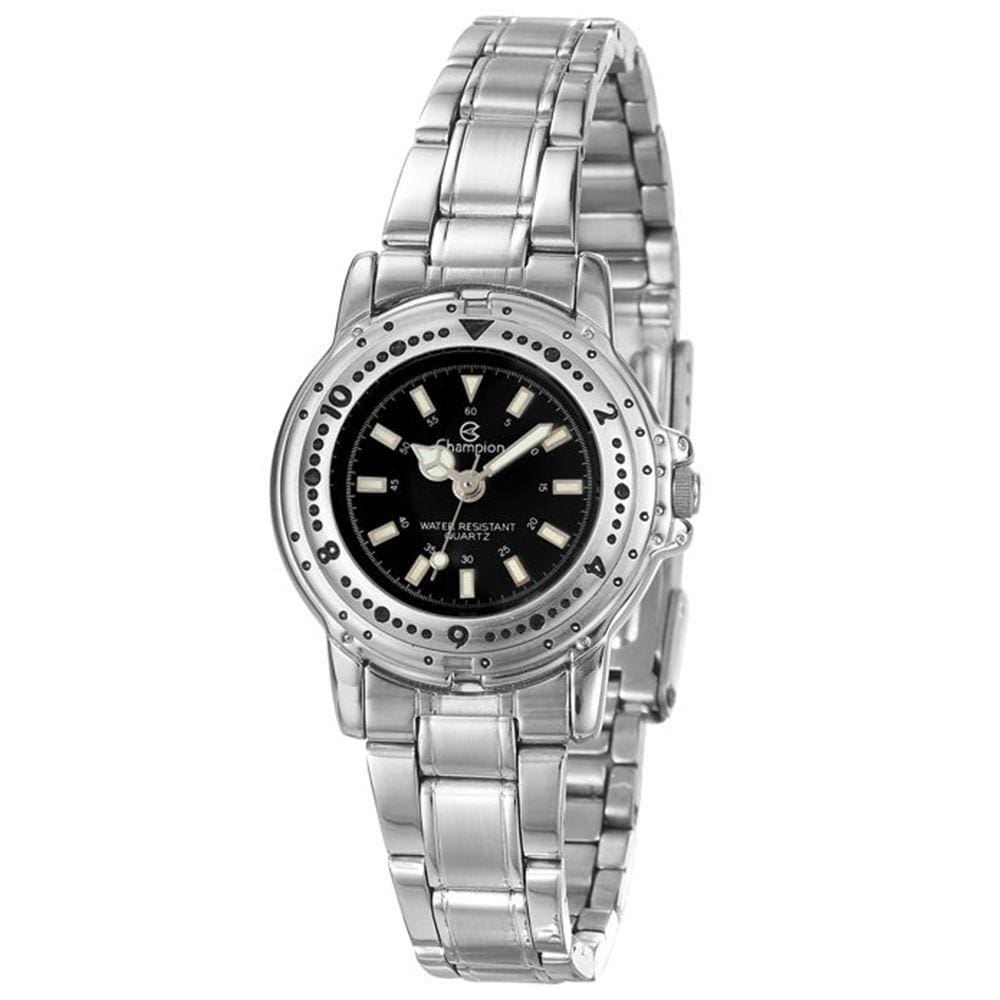 kit relogio champion feminino prata com preto ca21697c