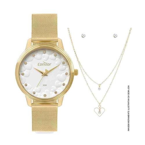 Kit Relógio Condor Dourado Feminino COPC21JLA/K4BNa Elister, a qualidade é uma prioridade em todos os nossos produtos e serviços. Nós nos esforçamos para oferecer aos nossos clientes uma ampla variedade de acessórios, incluindo relógios e óculos de sol, com as melhores marcas e estilos. Além disso, a nossa equipe é treinada para oferecer um atendimento excepcional, garantindo que cada cliente seja tratado com o respeito e a atenção que merece.A semijoia que vai acompanhada do produto pode variar de acordo com a disponibilidade do estoque e não está inclusa na garantia.ESPECIFICAÇÕES TÉCNICAS- Marca: Condor - Referência: COPC21JLA/K4B - Gênero: Feminino - Tipo de mostrador: Analógico - Tipo de movimento: Quartz - Tipo de fecho: Gancho - Cor da caixa: Dourado - Cor do mostrador: Branco - Cor da pulseira: Dourado - Material da caixa: Aço - Material da pulseira: Aço - Largura da caixa: 3,8 cm - Comprimento da pulseira: 25 cm - Resistência à água: 5 ATM 50 metros - Garantia: 12 meses