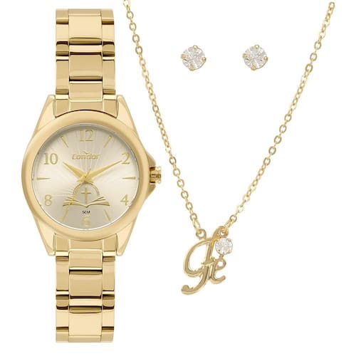 O Kit Condor Feminino Mimos e Sutilezas Dourado é a escolha perfeita para mulheres que valorizam delicadeza, estilo e simbolismo em um único conjunto. Composto por um relógio sofisticado, um colar com pingente em formato da palavra Fé e um par de brincos elegantes, este kit traduz charme e significado em cada detalhe.