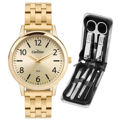 O Kit Relógio Condor Masculino Dia a Dia Dourado CO2035NRR/K4X é a combinação perfeita de elegância, funcionalidade e praticidade. Com um design moderno e sofisticado, este modelo possui caixa de 40mm em aço dourado e pulseira em aço com acabamento polido, proporcionando durabilidade e conforto no uso diário.