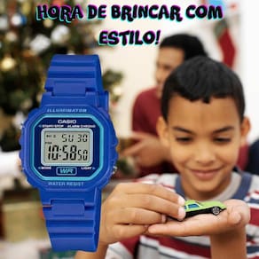 Este relógio Casio é uma opção prática e funcional para crianças que desejam um relógio digital com diversas funções, além de um design moderno com toques ousados e sutis. É durável, resistente à água e possui uma longa vida útil da bateria, tornando-o adequado para o uso diário de crianças em suas atividades cotidianas.