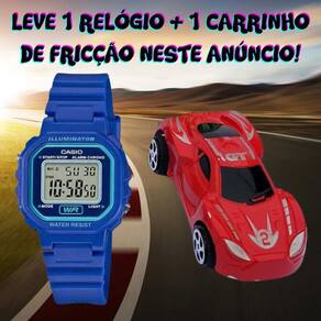 Kit Relógio de Pulso Casio Infantil Masculino Resistente Água Calndário Alarme Digital LA-20WHS + Carrinho Miniatura - LA-20WH-2ADF - Azul