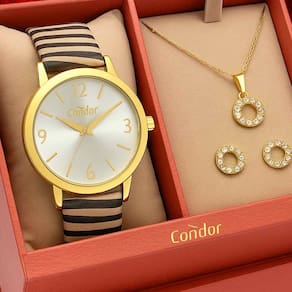 Estojo Condor Relógio feminino Colar e par de brincos Manual de instruções