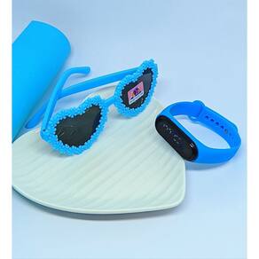 Kit Relógio Digital Meninas Toutch Led Prova água Silicone + Óculos de Sol Coração Menina Flor Florzinha Flexível Moda - Cor: Azul