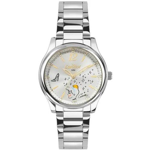 Kit Relógio Disney CONDOR Feminino Prata CO2035NNB/K4K Se apaixone pela linha das Princesas Os modelos conta com detalhes da Cinderela no seu mostrador A pulseira de 3 links em banho prateado e também possui lente facetada. Marca: Não Informado Ean: 7891530861710