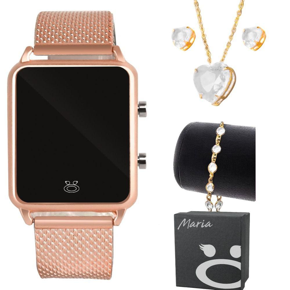 kit relogio feminino com pulseira