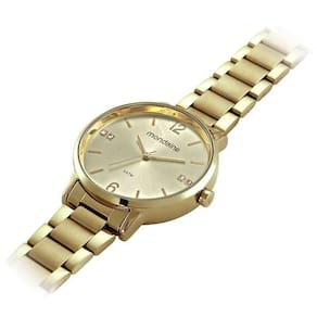Cor Dourado Formato Redondo Tipo de Tela Analogico Resistência 5 ATM Material do Vidro Cristal Mineral Cor do Mostrador dourado Cor da Pulseira Dourado Tamanho da Caixa 40 mm Espessura da Caixa 10 mm
