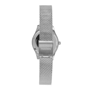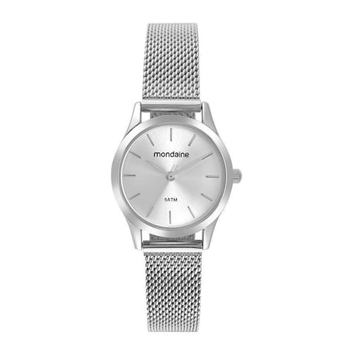 Kit Relógio Mondaine Prata Kit elegante composto por um relógio clássico de caixa pequena e uma deslumbrante semijoia. O relógio encanta com seu design charmoso, folheação prata e caixa de metal, combinado com uma pulseira de malha de aço delicada. Seu tamanho compacto de 2,8 cm proporciona um ajuste perfeito para pulsos mais delicados, garantindo elegância e conforto. Acompanha uma deslumbrante semijoia com aplicação de cristais e um brinco de ponto de luz, adicionando sofisticação e brilho ao seu visual.