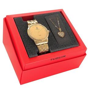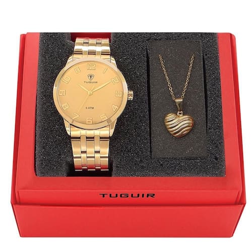 Kit relógio feminino tuguir analógico 2122 - dourado com