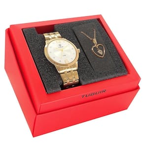Kit Relógio Feminino Tuguir ógico W2122 - Dourado E Prata Com Marca: Tuguir Categoria: ógico ógico: Sim 1 Horário Ponteiros Fluorescentes: Não Digital: Não Calendário: Não Despertador: Não Mostra o Dia da Semana: Não Mostra o Dia do Mês: Não Cronômetro: Não Contador Regressivo: Não Luz: Não Resistente à Água: 5 ATM Pode ser para nadar no raso, por pouco tempo submerso - Respingos: Sim - Chuva: Sim - Lavar Carro: Sim - Lavar Louça: Sim - Natação: Sim - Mergulho: Não Característica do Vidro: Cristal Mineral Tipo de Fecho: Dobrável com Botão Cor da Caixa: Dourado Material da Caixa: Metal Banho IP Formato da Caixa: Redondo Diâmetro da Caixa: 39,00 mm Espessura da Caixa: 11,50 mm Cor da Pulseira: Dourado Material da Pulseira: Aço Largura da Pulseira: 18,00 mm Comprimento Máximo da Pulseira: 220,00 mm Alimentação: Bateria Interna Peso Líquido: 0,084 Kg Modelo: W2122 Cor Predominante: Dourado Cor Diferencial: Prata : 12 Meses Conteúdo da Embalagem: 01 Relógio 01 Embalagem 01 Termo de Marca: Não Informado