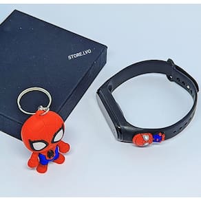 Kit Relógio Infantil Digital Led Bracelete Silicone + Chaveiro Mini Boneco 3D Emborrachado Super Heróis Lilo Stitch - Cor: Homem aranha