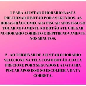 Estilo:Fashion,Social,Casual,Balada,Festa,Dia a Dia , Noite , Fitness , Esportivo, Trabalho , lazer,Para todas as ocasioes.Gênero: masculino, feminino, adulto e infantilFunções especiais: Sistema a cada 12 horas, Visor com função de data Mensal/Diário (Hora/Minuto)Tipo de Visor: Relógio digital com LEDEstilo: fashionÀ prova d’água: SimTipos de mecanismo: Mandril com Visor de Toque de LEDEspessura: 12mmSombreamento do Vidro: Espelho de Vidro ComumEstilo do Botão: FivelaMaterial da Pulseira: Cimento de plásticoForma do visor: quadradoMaterial da caixa: ABSEspecificação da embalagem: 48x19x12mmComprimento da mesa: 220mmPeso líquido: 20g