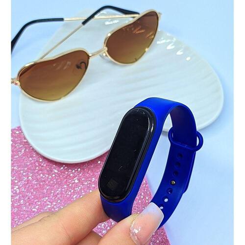 Kit Relógio Infantil Digital Led Prova água Silicone Meninas + Óculos de Sol Formato Coração Armação Aço - Cor: Azul