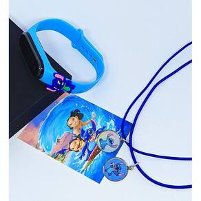 Kit Relógio Infantil Digital Led Silicone Personagens Anime 3D + Colares Amizade Best Friends Menina Menino Presente - Cor: Stitch azul
