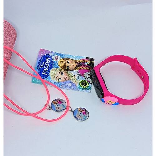 Kit Relógio Infantil Digital Led Silicone Personagens Anime 3D + Colares Amizade Best Friends Menina Menino Presente - Cor: Sereia