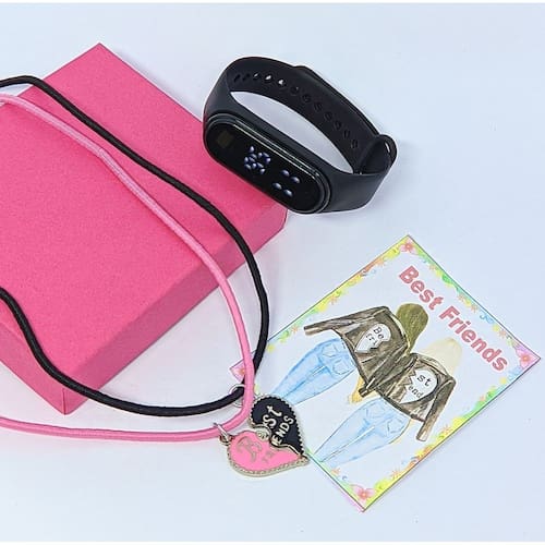 Kit Relógio Infantil Digital Led Silione Esporte Menina Menino + Colares Amizade Best Friends Pingente Desenho Animado - Genero: Feminino / Cor: Preto