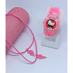 Kit Relógio Infantil Digital Pisca Luz Toca Musica + Colar de Amizade Best Friends Personagem Aranha Frozen Friend Moda - Cor: Hello