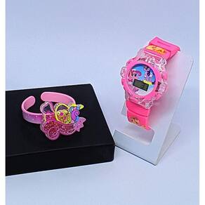Kit Relógio Infantil Digital Pisca Luz Toca Musica Princesas Disney Minnie Barbie + Pulseira Bracelete 3D Colorida - Cor: Pony
