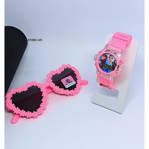 Kit Relógio Infantil Digital Pisca Luz Toca Musica Princesas Frozen + Óculos de Sol Coração Flor Florzinha Margarida - Cor: Frozen
