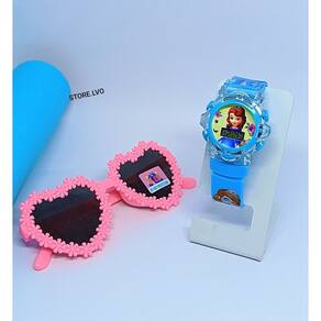 Kit Relógio Infantil Digital Pisca Luz Toca Musica Princesas Frozen + Óculos de Sol Coração Flor Florzinha Margarida - Cor: Sofia