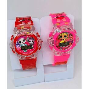 Kit Relógio Infantil Menina Digital Pisca Luz Led Musica + Tiara Arquinho Cabelo Princesas Disney Presente Lembrancinha - Cor: Lol