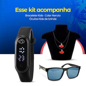 Kit Relógio, Óculos e Colares Temáticos Anime - Estilo e Amizade desde a Infância Descrição: Este incrível Kit Temático Anime da Orizom é perfeito para as crianças a partir de 5 anos que são fãs do ninja mais famoso dos desenhos animados. Com um relógio digital moderno, óculos de sol temáticos e dois colares para compartilhar com um amigo, este kit é uma escolha divertida e estilosa. Conteúdo do Kit: