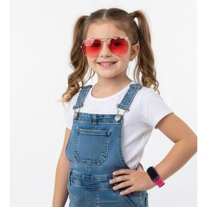 Kit Relógio Led Infantil Band Bracelete Silicone Menina + Óculos de Sol Aviador Lacinho Flexível aço Proteção Uv400 - Cor: Rosa
