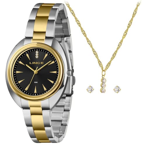 O Relógio Lince Feminino LRTM049L36 K0H7P1SK é uma peça que une sofisticação e praticidade, ideal para mulheres que apreciam estilo e elegância em todos os momentos. Com design refinado, ele apresenta caixa de 36mm em metal e pulseira em aço bicolor (prata e dourado), que realça ainda mais sua modernidade. O mostrador preto minimalista é complementado por marcadores dourados e detalhe delicado com três cristais na posição de 12 horas, oferecendo charme e personalidade ao modelo.