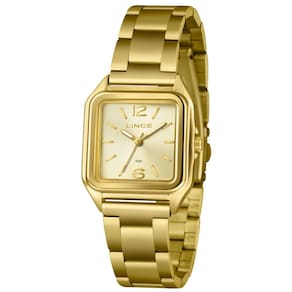 Marca: Lince Referência: LQGM060L30 C2KX Gênero: Feminino Cor da Pulseira: Dourado Cor da Caixa: Dourado Material da Pulseira: Aço Inoxidável (tipo mesh) Material da Caixa: Metal Tamanho da Caixa: 30 mm x 30 mm Espessura da Caixa: 8 mm Resistência à Água: 5 ATM (50 metros) Tipo de Movimento: Analógico (Quartz) Vidro: Cristal Mineral