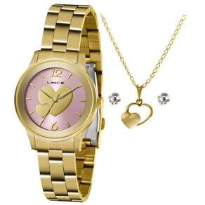 Kit Relógio Lince Feminino Lrgh150L Ky51 + Colar E Brinco Garanta seu acessório ou presenteie quem você ama com um preço especial e com produtos e de qualidade. Marca: Lince Gênero: Feminino Material da Pulseira: Aço inoxidável Material da Caixa: Aço inoxidável Cor do relógio: Dourado Cor do mostrador: Rosa Cor da Caixa: Dourado Medida da caixa: 35 mm com o pino Resistência à água: 5 ATM Analógico Produto Acompanha . Acompanha Colar e Brincos. Ean: 7891529195727