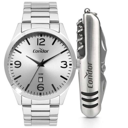 Kit Relógio Masculino Condor + Multifunções CO2115MXK/K4K Kit Relógio Masculino Condor Analógico Possui incrível design, deixando seu look mais despojado e elegante ao mesmo tempo. Além disso, foram confeccionados com material de primeiríssima qualidade, tornando-o resistente e durável. Características:ean: 7895245082460Marca: CondorModelo: CO2115MXK/K4KCor da caixa: PrataMaterial da caixa: MetalMaterial da pulseira: AçoCor da pulseira: PrataResistência à água: 5 ATMFunção: CalendárioKit Contém 1 Relógio e 1 MultifunçõesDimensões da Embalagem:Altura: 9cmLargura: 15cmProfundidade: 16cmPeso: 0,400KgGarantia: 12 Meses
