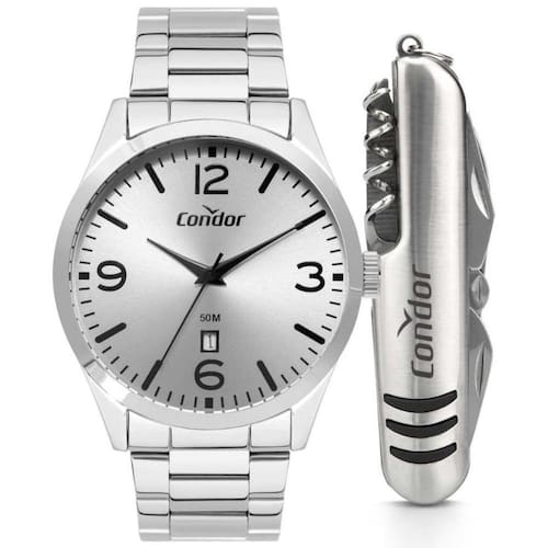 Kit Relógio Masculino Condor + Multifunções CO2115MXK/K4K Kit Relógio Masculino Condor Analógico Possui incrível design, deixando seu look mais despojado e elegante ao mesmo tempo. Além disso, foram confeccionados com material de primeiríssima qualidade, tornando-o resistente e durável. Características:ean: 7895245082460Marca: CondorModelo: CO2115MXK/K4KCor da caixa: PrataMaterial da caixa: MetalMaterial da pulseira: AçoCor da pulseira: PrataResistência à água: 5 ATMFunção: CalendárioKit Contém 1 Relógio e 1 MultifunçõesDimensões da Embalagem:Altura: 9cmLargura: 15cmProfundidade: 16cmPeso: 0,400KgGarantia: 12 Meses