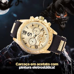 Kit relógio masculino dragon pulseira colar dourado O relógio orizom spaceman dragon dourado é um relógio elegante e sofisticado, com um toque de estilo contemporâneo. Ele possui uma caixa dourada premium da marca orizom spaceman, que confere uma aparência luxuosa ao relógio. A pulseira é feita de silicone ajustável, o que proporciona conforto e praticidade ao usuário. Além disso, o relógio acompanha acessórios adicionais. Ele vem com um cordão grumet banhado a ouro 18k, que possui 11mm de largura, e um pingente grande em forma de cruz, que adiciona um toque religioso e estiloso ao conjunto. Também inclui uma pulseira grumet banhada a ouro 18k, com a mesma largura do cordão. Com o relógio orizom spaceman dragon dourado com pulseira de silicone ajustável, você terá um acessório de alta qualidade, com design moderno e elementos adicionais que complementam o estilo. É uma combinação perfeita de funcionalidade e elegância. Encaminhamos em seu email antes do despacho e em formato de etiqueta colado na caixa Quanto tempo de Seguimos o que o cdc código de defesa do consumidor diz e cumprimos essa lei. A deste produto é de 3 meses, contados do dia do recebimento do pacote Não é a prova d'água Este item não tem tecnologia de vedação. Desta forma não recomendamos o contato com água, perfumes ou produtos a base de álcool nem com finalidades para mergulho ou práticas de esportes aquáticos. Marca: Não Informado