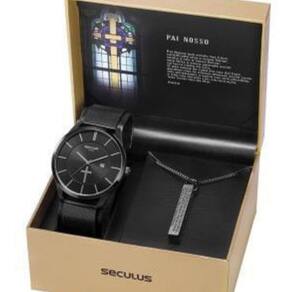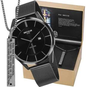 Kit Relógio Masculino Seculus Pai Nosso 20769Gpskpa1K1
