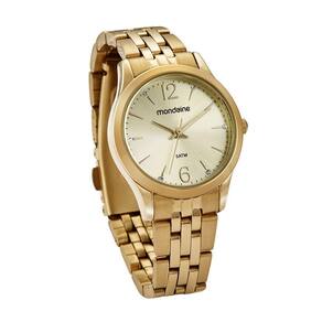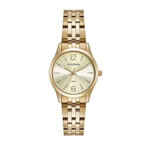 Kit Relógio Mondaine Feminino Analógico 32606LPMKDE1K1 ESPECIFICAÇÕES TÉCNICAS - Marca: Mondaine - Gênero: Feminino - Tipo de mostrador: Analógico - Tipo de fecho: Dobrável com dois botões - Cor do mostrador: Dourado - Cor da pulseira: Dourado - Material da caixa: Metal - Material da pulseira: Aço - Largura da caixa: 3 cm - Resistência à água: 5 ATM 50 metros - : 12 meses