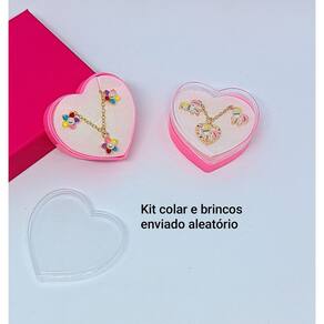 Kit conjunto infantil colar com brincos com caixinha Coração