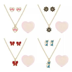 Kit Conjunto Colar com Brincos Infantil Fofo - Bijuteria