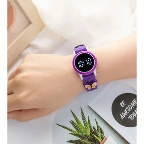 Kit Relógo Infantil Digital Led Redondo Pulseira silicone Desenho animado 3D + Conjunto colar e Brincos Crianças Meninas - Cor: Roxo