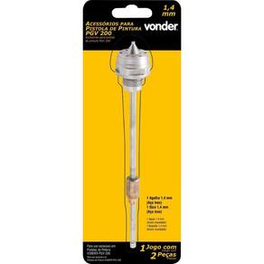 Marca: VonderConteúdo da embalagem:1 Agulha de 1,4 mm e 1 bico de 1,4 mm.Destaques e diferenciais:Possui agulha e bico em inox, proporcionando maior resistência à oxidação/corrosão.Aplicações e dicas de uso:Indicado para uso exclusivo na Ferramenta de aplicação de pintura modelo PGV 200 VONDER.Detalhes TécnicosMaterial do bico: Aço inox Diâmetro do bico da Ferramenta de aplicação: 1,4 mm Modelo da Ferramenta de aplicação: PGV 200 Massa aproximada peso kg : 0,048 kg - E CDC : legal: 90 dias Marca: Não Informado