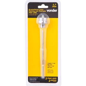 Marca: VonderConteúdo da embalagem:1 Agulha de 1,7 mm e 1 bico de 1,7 mm.Destaques e diferenciais:Possui agulha e bico em inox, proporcionando maior resistência à oxidação/corrosão.Aplicações e dicas de uso:Indicado para uso exclusivo na Ferramenta de aplicação de pintura PGV 200 VONDER.Detalhes TécnicosMaterial do bico: Aço inox Diâmetro do bico da Ferramenta de aplicação: 1,7 mm Modelo da Ferramenta de aplicação: PGV 200 Massa aproximada peso kg : 0,047 kg - E CDC : legal: 90 dias Marca: Não Informado