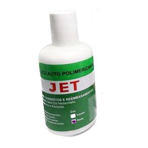 Kit Resina Acrílica Pó Incolor 78g + líquido 30ml Jet Clássico Kit Resina Acrílica Auto Polimerizante Pó Incolor 78g + Líquido 30ml ODONTOLOGIA - Reembasamentos - Consertos e adições de próteses e PPR - Confecção de próteses imediatas provisórias - Confecção de moldeiras individuais - Confecção de bases de prova de - Confecção de placas inter oclusais - Confecção de guias cirúrgicos REPAROS GERAIS - Reparos automotivos - Carcaças de Notebook - Videogames - Modelos de silicone - Reparos em peças de plástico em geral INFORMAÇÕES TÉCNICAS - Registro na ANVISA: 10234680009 O que vem no KIT - 1 Frasco LÍQUIDO 30ml - 1 Frasco PÓ 78g incolor Marca: Não Informado