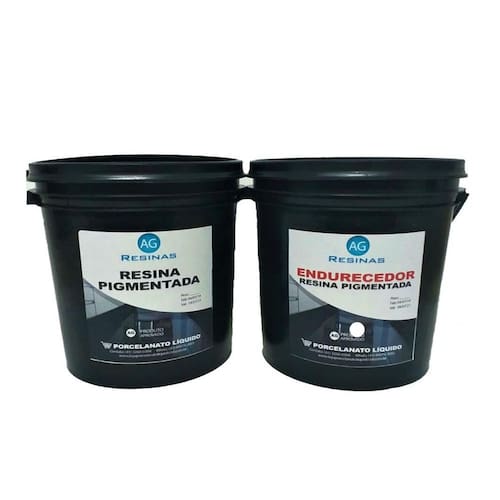 Kit Resina Epóxi Verde + Endurecedor Porcelanato Líquido 4Kg A Resina Epóxi Pigmentada AG é um Kit bicomponente de alta qualidade, pois o produto está puro e livre de diluentes, proporcionando muito mais brilho e qualidade no acabamento da aplicação. Contém um sistema de cura com endurecedor sem apresentar superfície oleosa blushing mesmo quando é utilizado à temperatura ambiente, sendo ou não em película. Com rendimento para 4 m² utilizado com o rodo PT2 com 1,5 mm de espessura. Componente A: 2,680 kg de Resina - Componente B: 1,320 kg de Endurecedor. Modo de Preparo: Em um balde adicionar o componente B sobre o componente A, obedecendo sempre a proporção de 2 partes do componente A para 1 parte do componente B, ou seja: 2 A / 1 B. Misture o componente A Resina com o componente B Endurecedor durante 5 minutos, após a mistura derrame todo o produto do recipiente na superfície desejada utilizando-o imediatamente. Marca: Não Informado