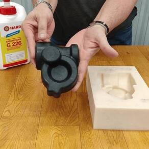 As peças feitas com o PC 26 + G 226 podem ser reparadas facilmente. Basta fazer um lixamento superficial para criar ranhuras e promover uma boa ancoragem com a nova camada do sistema envazada. Com isso, a manutenção com solda pode ser deixada no passado.