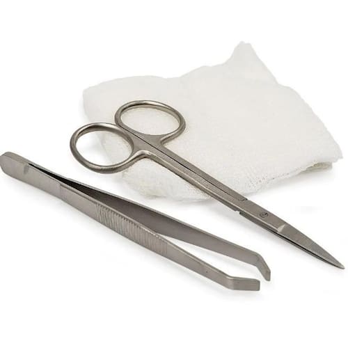 Kit curativo para auxiliar na retirada de pontos de procedimentos cirúrgicos. Com segurança garantida pelo material descartável e esterilizado. Como o material está reunido, o atendimento ao paciente fica mais rápido e ágil Características Técnicas: Kit composto por: 01 pinça retirada de pontos, fabricada em liga metálica, com 120 mm de comprimento; 01 tesoura Íris, fabricada em liga metálica, com 115 mm de comprimento 05 compressas de gaze de 11 fios, com dimensões de 7,5 cm x 7,5 cm dobrada; Verifique a integridade da embalagem antes de usar. Não utilizar se a embalagem estiver violada, danificada ou molhada. Inspecione previamente cada componente antes do uso. Se danificados, não utilize. Embalagem permite técnica asséptica de abertura. Manusear itens praticando a técnica asséptica afim de evitar contaminação dos componentes. Produto de uso único, descartável, destruir após o uso. O descarte deve seguir as normas de biossegurança para lixo hospitalar contaminado e perfurocortante. Não há contraindicações conhecidas. Ean: 7898027903083