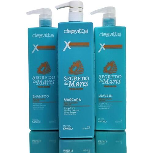 Contém 1 - shampoo segredo dos mares 1 litro dexvitta 1 - máscara segredo dos mares 1kg dexvitta 1 - leave-in segrego dos mares 1 litro dexvitta Shampoo segredo dos mares Revitalizante capilar Ômega 3/6/9 - peptídeos marinhos extrato de caviar aligoelementos O shampoo segredo dos mares dexvitta foi desenvolvido para todos os tipos de cabelos, principalmente cabelos secos e danificados. Sua fórmula contém ativos que nutre, repara e hidrata intensa mente na camada mais profunda da fibra capilar deixando os fios protegidos do ressecamento causado por agressões diárias do tempo e altas temperaturas. Fórmula inovadora com alta concentração de ômegas 3/6/9, peptídeos marinhos. Extrato de caviar e oligoelementos que restauram a camada lipídica dos cabelos e garante fios macios, brilhantes, totalmente hidratados e fáceis de pentear Modo de usar: aplicar sobre os cabelos úmidos e massagear suavemente o couro cabeludo com movimentos circulares. Enxaguar em abundância e repetir a operação. Deixar em pausa por 3 minutos na segunda aplicação enxaguar abundantemente Máscara segredo dos mares Revitalizante capilar Ômega 3/6/9 - peptídeos marinhos extrato de caviar aligoelementos A máscara segredo dos mares dexvitta foi desenvolvida para todos os tipos de cabelos, principalmente cabelos secos e danificados. Sua fórmula contém ativos que nutre, repara e hidrata intensa mente na camada mais profunda da fibra capilar deixando os fios protegidos do ressecamento causado por agressões diárias do tempo e altas temperaturas. Formula inovadora com alta concentração de ômegas 3/6/9, peptídeos marinhos, extrato de caviar e oligoelementos que restauram a camada lipídica dos cabelos e garante fios macios, brilhantes, totalmente hidratados e fáceis de pentear. Modo de usar: após lavar os cabelos com o shampoo segredo dos mares dexvitta aplique a máscara segredo dos mares em toda a extensão dos fios, enluvando cuidadosamente mecha a mecha. Deixe agir por 10 minutos e enxague em abundância. Dica: utilize o conteúdo do frasco ampola unidose segredo dos mares dexvitta associado à máscara segredo dos mares mecha a mecha, deixe agir 5 minutos, massageie e enxague, para potencializar os efeitos hidratantes e nutritivos. Finalize como desejar. Leave-in segredo dos mares Revitalizante capilar Ômega 3/6/9 - peptídeos marinhos extrato de caviar aligoelementos O leave in segredo dos mares dexvitta foi desenvolvido para todos os tipos de cabelos, principalmente cabelos secos e danificados. Sua fórmula contém ativos que nutre, repara e hidrata intensa mente na camada mais profunda da fibra capilar deixando os fios protegidos do ressecamento causado por agressões diárias do tempo e altas temperaturas. Fórmula inovadora com alta concentração de ômegas 3/6/9, peptídeos marinhos, extrato de caviar e oligoelementos que restauram a camada lipídica dos cabelos e garante fios macios, brilhantes, totalmente hidratados e fáceis de pentear. Modo de usar: após usar a máscara segredo dos mares dexvitta , com os cabelos úmidos, aplique o leave in segredo dos mares no comprimento e pontas dos fios. Não enxague e finalize como desejar. Perguntas e respostas.