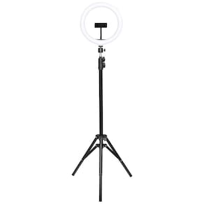 Diâmetro do anel: 26cm Suporte flexível para celular até 8Equot;Equot; Altura máxima do tripé: 1,65 metros Potência: 12W Giro de 360° da Ring Light Cabo USB de 1,5 metros Controle de temperatura da luz: fria, natural e quente Controle de intensidade da luz Temperatura da luz: 2900K - 5700K