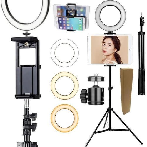 Kit ring light luz led anel iluminador tripé suporte apoio encaixe para tablet celular universal foto vídeo selfie lacrado em sua embalagem . Kit tripé 2 metros + suporte para tablet celular + ring light led usb Equipamento muito versátil para estúdios, home office, maquiadores, tiktokers e produtores de conteudo em geral... Suporte diversos equipamentos nos mais variados ambientes Tripé com ajuste de altura até 2,10 metros Acompanha ring light de led com 3 modos de cores frio, quente e neutro e 10 níveis de intensidade de iluminação Suporte adaptador 2 em 1 para celular tablet Iluminador ring light de 16 centímetros 6,5 polegadas , desenvolvido para maquiadores, fotógrafos, cinegrafistas, youtubers e etc, que buscam uma ótima maneira de iluminar com perfeição. O encaixe do ring ligth é através de encaixe padrão de tripés de rosca. O mini tripé também serve para utilizar em outros equipamentos de até 1kg de peso, como projetores, celulares e etc. É recomendado e extremamente eficaz para a macro fotografia, fotografia médica, odontológica, científica, hobby e para a iluminação/fotografia de produções de maquiadores. A alimentação do iluminador é através de cabo usb não acompanha adaptador de tomada e não possui bateria interna recarregável , você pode utilizar um adaptador de tomada de celular para ligar ou conectar no usb do computador ou outro equipamento que forneça 5v usb. O cabo usb deverá estar sempre ligado para funcionar. Tripé robusto de alta qualidade, possui molas internas para amortecimento, braçadeiras reforçadas em nylon, altura de 2,10 mts, abertura dos pés de 88 cm promovendo boa estabilidade, pino 5/8 com rosca 1/4 para usar diversos tipos de equipamentos. Pintura preta, tornando - o mais discreto no ambiente de cine & foto. Reforçado, chegando a suportar 6 kg , pode ser com diversos equipamentos de iluminação. acompanha suporte para celular e tablet . Além disso este tripé é um modelo muito recomendado para utilização junto a equipamentos fotográficos e iluminação, uma vez que possui uma estrutura resistente com composta por materiais de alumínio e partes plásticas, conseguindo alcançar uma altura máxima de 2,10 metros e mínima de 68cm quando totalmente fechado, pesando somente cerca de 780 gramas, sendo portanto, carregado com muita facilidade e praticidade. O tripé de iluminação tpi-200 ainda possui 3 seções e 3 travas, que proporcionam ao usuário uma regulagem na altura, de forma que possibilite ao mesmo criar diversos modos de uso, conforme a necessidade de operação em cada um de seus trabalhos. Suporte adaptador 2 em 1 para tablet celular Muito útil para selfies, fotos e gravações de vídeo para instagram, facebook, youtube, tiktok etc. Material de alta qualidade que prende firmemente o seu smartphone, tablet ou . Ideal para uso com mini tripé de mesa, pau de selfie ou qualquer tripé com sistema de rosca 1/4. Abertura compatível com aparelhos celulares de 5,5 até 8,5 cm de largura. Abertura posterior para aparelhos de 11 até 18 cm de largura. O kit contém: 1 tripé profissional de até 2,10m de alcance 1 ring light 16cm com mini tripé 1 suporte adaptador 2 em 1 para tablet e celular 1 ball head 360 graus Atenção: Não acompanha celular ou dispositivos. lacrado em sua embalagem . Postamos em até 24 horas úteis.