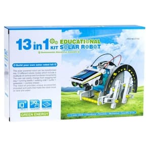 O Kit de Robô Solar Educativo 13 em 1 permite que você construa 13 robôs diferentes com energia solar - um de cada vez - que imitam um cão caminhando, um caranguejo, um surfista de natação, um boxeador e muito mais. Cada robô requer que você siga instruções de montagem específicas para lhe dar um curso intensivo em engenharia enquanto se diverte. Dois níveis de dificuldade permitem que os iniciantes ganhem facilmente confiança construindo robôs mais simples antes de passar para o próximo nível. Nenhum dos robôs precisa de baterias - apenas o sol ou uma fonte de luz forte é suficiente - para operar qualquer um dos 13 modelos de robôs. Um Kit educativo simplesmente formidável para crianças, pois desenvolve capacidade cerebral, além de ensinar sobre os benefícios da energia solar. O painel de energia solar torna esses robôs amigáveis ao meio ambiente. Ideal para expressar o interesse de seus filhos pela ciência, extremamente útil para seus filhos no desenvolvimento da criatividade. Características Produto 100% novo e de alta qualidade Permite montar 13 modelos diferentes de robô, todos movidos a energia solar Monte facilmente você mesmo junto ao seu filho Enviamos manual de instruções e Video demonstrativo - favor solicitar o video após a compra 100% movido a energia solar. Não requer baterias Marca - Cue Sunlight Material - Plástico Modelo - 13 em 1 Idade indicada - 6+ Gênero - unisex Cor - Multi-colorido Peso - 477g Produto Certificado: INMETRO CE -BRI/IQB 05170 NM 300/2002 OCP 0006
