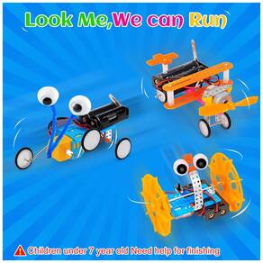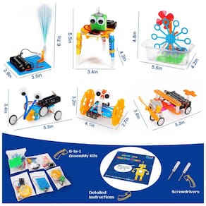 O kit de robótica STEM Tsomtto 6 em 1 é um conjunto de ciência e engenharia com componentes eletrônicos e mecânicos que permite montar seis projetos diferentes, incluindo robô réptil, carro de equilíbrio, máquina de bolhas, lâmpada de fibra óptica, robô desenhista e avião deslizante. Cada modelo utiliza motor elétrico, engrenagens básicas, estrutura plástica e conexões para circuitos simples, oferecendo atividades práticas de montagem e experimentação com princípios de eletricidade e movimento. O conjunto acompanha chaves de fenda e manual passo a passo para orientar a montagem das estruturas e a conexão dos módulos elétricos.