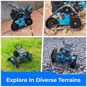 O Kit Robótico Makeblock mBot2 Rover com Extensor Rover Robotics é uma solução avançada para educação STEM que une diversão e tecnologia moderna. Inclui o robô mBot2 equipado com microcontrolador CyberPi, sensores como giroscópio, acelerômetro, sensor de cor e de distância, além do pacote Rover Robotics que amplia a mobilidade do robô, permitindo adaptá-lo para terrenos difíceis com rodas ou esteiras.